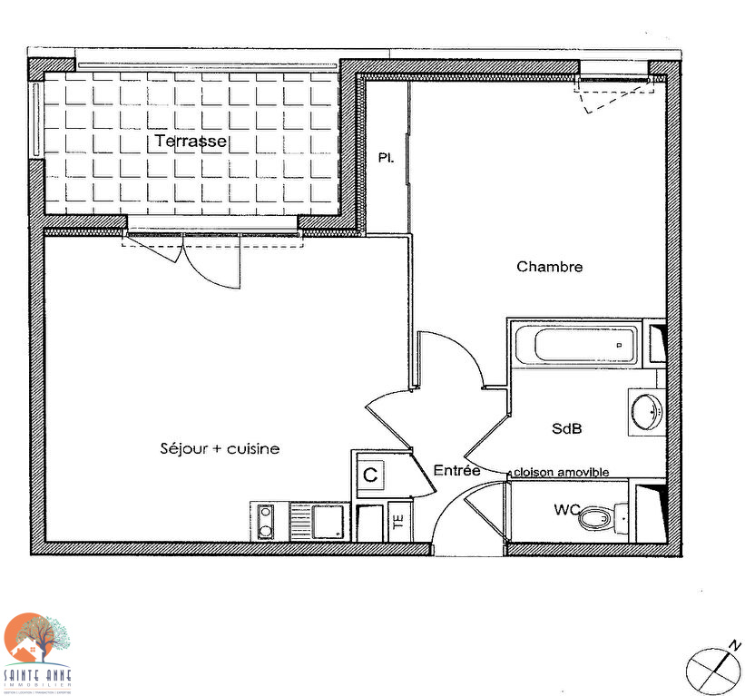 Appartement récent de type 2 de 42 m² avec terrasse de 8 m² et deux places de parking sur la commune de Villeneuve proposant entrée avec placard salle de bains WC indépendant une chambre avec placards pièce de vie avec cuisine ouverte aménagée et équipée (hotte et plaques) communicante sur terrasse.chauffage gaz de ville à visiter sans tarder !!!logement soumis au plafond loi Pinel LIBRE LE 03/04/2026Copropriété de 33 lots.